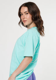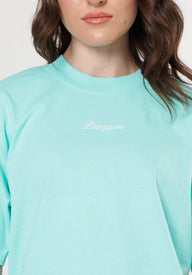 Oversized fit Dropped Shoulders Mock collar neckline Rib collar Screen-printed graphic Manufactured and printed in USA