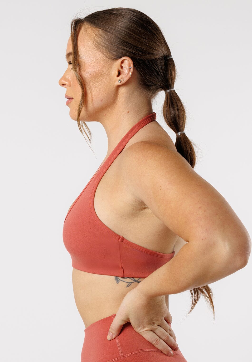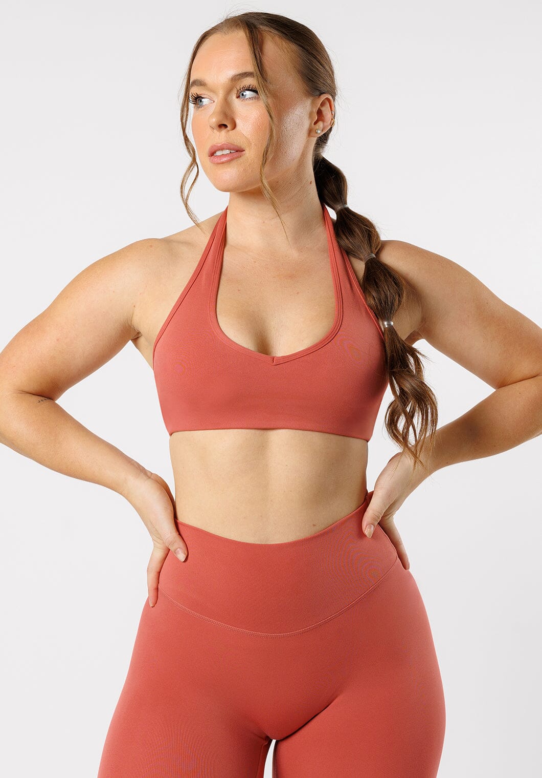 Show off your back-day gains in a halter bra, with a low V-neckline and an alluring open back. The removable cups and elastic waistband ensure a perfect fit and low-medium support while keeping you chic and confident. Embrace the day with flair.
