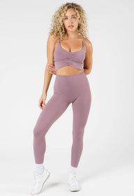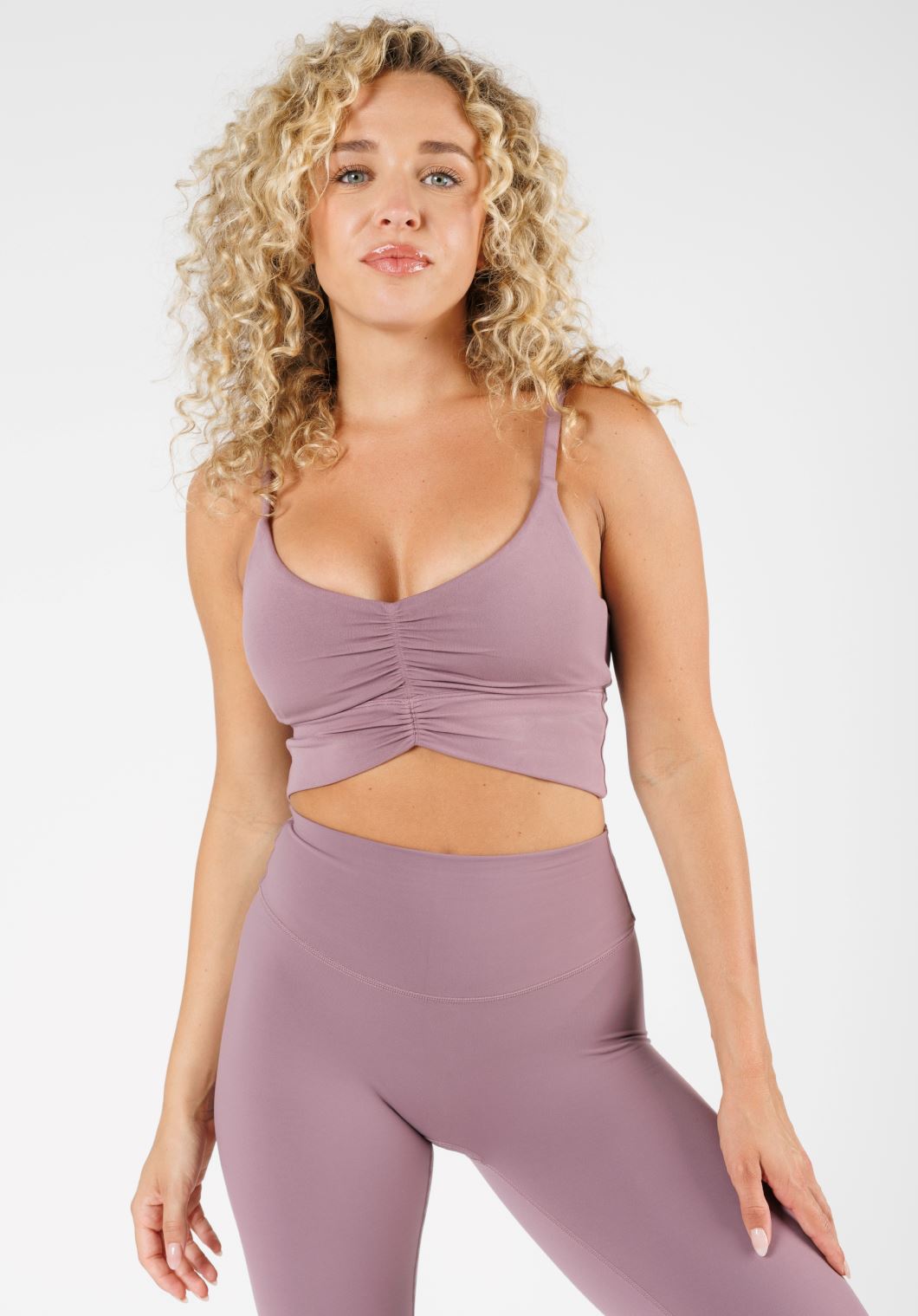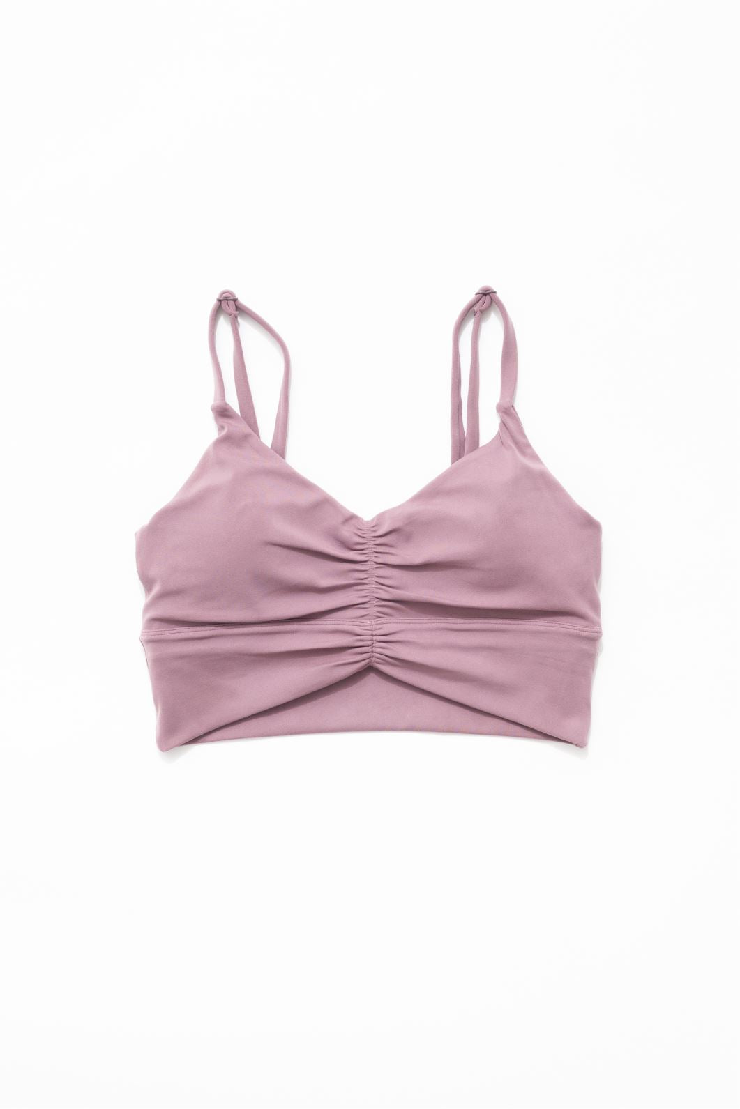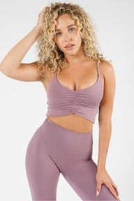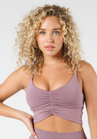 Introducing our new Reluna Ruched Bralette, designed with a super flattering deep V neckline and scrunched front detail that will make the girls look their best. With adjustable straps, encased elastic, and removable cups, it's both comfortable and supportive. Perfect for low-impact workouts like yoga, pilates or everyday wear.